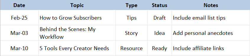 Consistency is key on Substack. Readers love newsletters that arrive on time, with valuable insights. A content calendar is your roadmap, it helps you plan topics, schedule posts, and reduce stress about “what to write next.”